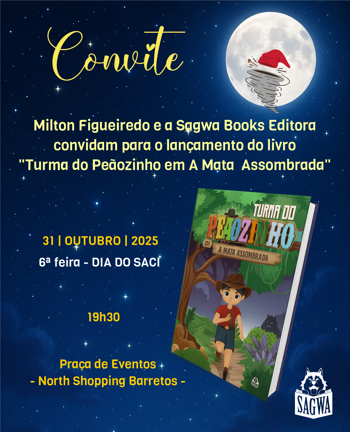No dia 31 de outubro, data em que se comemora o Dia do Saci, o escritor e jornalista Milton Figueiredo lança oficialmente o livro “Turma do Peãozinho em A Mata Assombrada”, publicado pela Sagwa Books Editora. O evento será realizado às 19h30, na Praça de Eventos do North Shopping Barretos, e marca um momento especial para a literatura infantojuvenil ao unir aventura, cultura sertaneja e o folclore brasileiro.